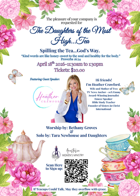 The Women of Anastasia exist to help women know Jesus deeply, grow in faith, and live out their God-given purpose. Through prayer, Bible study, meaningful gatherings, and authentic community, we create space for women to be encouraged, equipped, and transformed. We are committed to loving women right where they are and walking together in faith. Every woman belongs here, and we invite you to join us as we grow, serve, and follow Christ together.